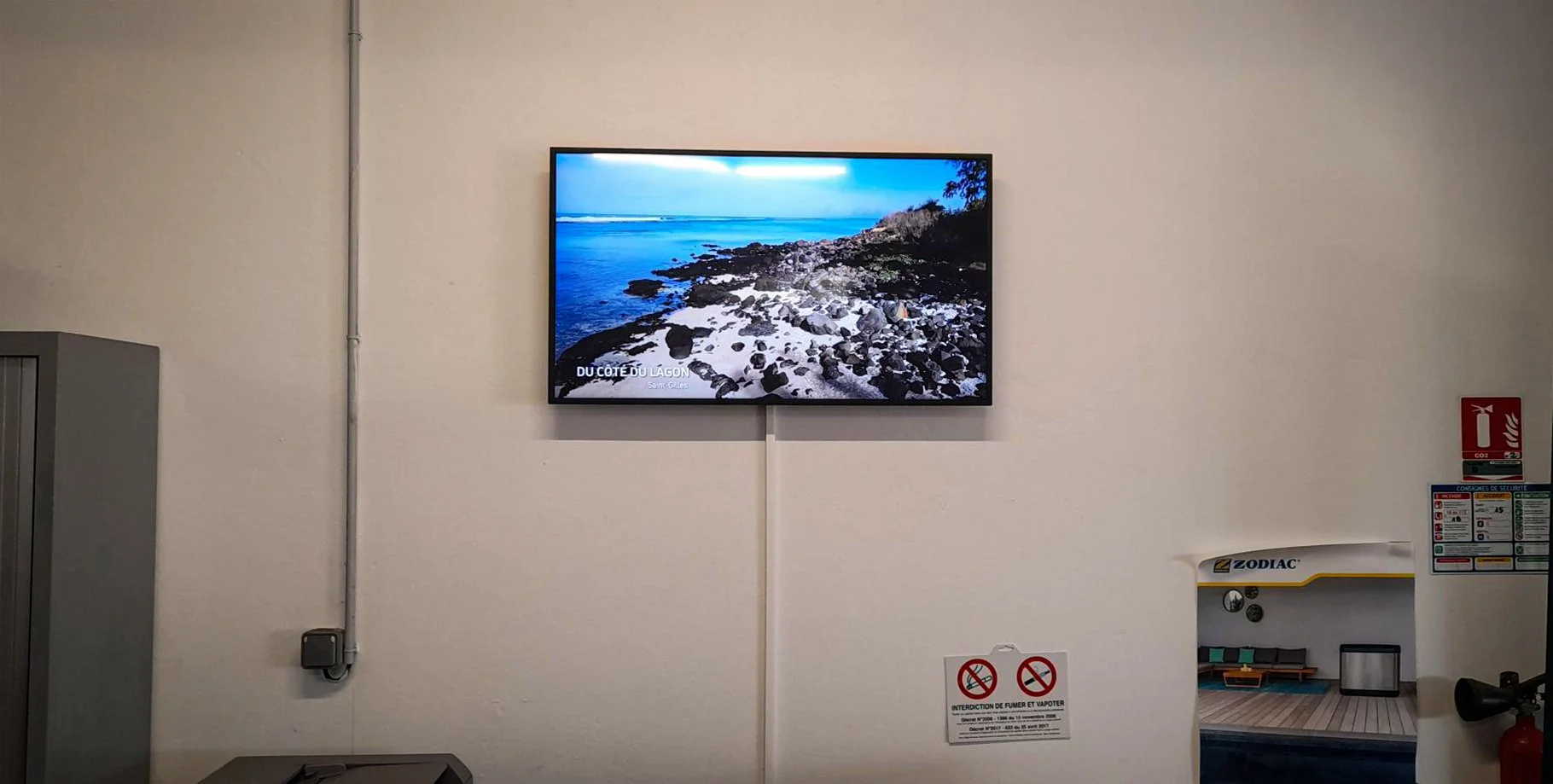 Leal Réunion prend son envol et diffuse sa campagne BMW dans les écrans du salon VIP.